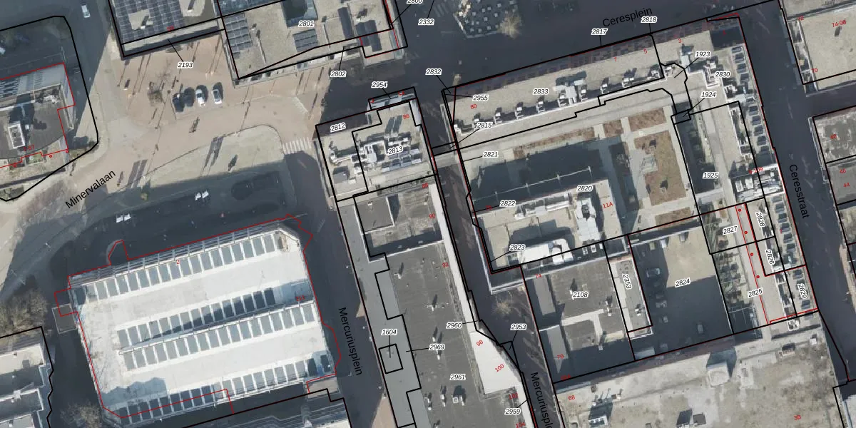 Het perceel waarop Mercuriusplein 90 staat heeft een oppervlakte van 1664 m². Dit is een zeer groot perceel. De perceeloppervlakte wordt geregistreerd door het Kadaster. Gedetailleerde informatie over de maten van dit perceel kunt u vinden in het rapport Kadastrale kaart met maatvoering van Mercuriusplein 90.