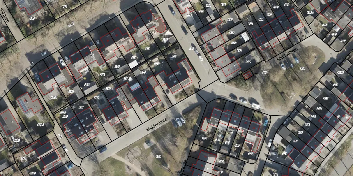 Het perceel waarop Middenbree 4 staat heeft een oppervlakte van 300 m². Dit is een groot perceel. De perceeloppervlakte wordt geregistreerd door het Kadaster. Gedetailleerde informatie over de maten van dit perceel kunt u vinden in het rapport Kadastrale kaart met maatvoering van Middenbree 4.