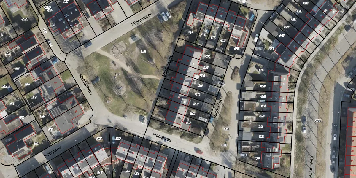 Het perceel waarop Middenbree 41 staat heeft een oppervlakte van 166 m². Dit is een middelgroot perceel. De perceeloppervlakte wordt geregistreerd door het Kadaster. Gedetailleerde informatie over de maten van dit perceel kunt u vinden in het rapport Kadastrale kaart met maatvoering van Middenbree 41.