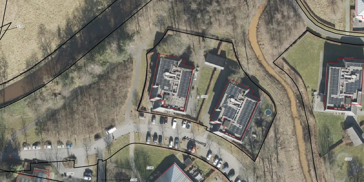 Het perceel waarop Middenweg 1-G staat heeft een oppervlakte van 3115 m². Dit is een zeer groot perceel. De perceeloppervlakte wordt geregistreerd door het Kadaster. Gedetailleerde informatie over de maten van dit perceel kunt u vinden in het rapport Kadastrale kaart met maatvoering van Middenweg 1-G.
