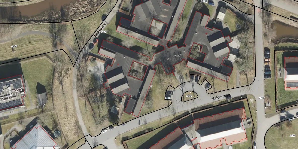 Het perceel waarop Middenweg 17 staat heeft een oppervlakte van 1,4 ha. Dit is een zeer groot perceel. De perceeloppervlakte wordt geregistreerd door het Kadaster. Gedetailleerde informatie over de maten van dit perceel kunt u vinden in het rapport Kadastrale kaart met maatvoering van Middenweg 17.