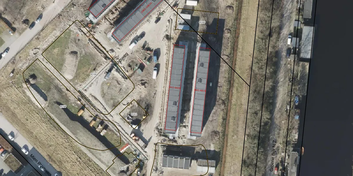 Het perceel waarop Mien Ruysweg 4-A-13 staat heeft een oppervlakte van 4,9 ha. Dit is een zeer groot perceel. De perceeloppervlakte wordt geregistreerd door het Kadaster. Gedetailleerde informatie over de maten van dit perceel kunt u vinden in het rapport Kadastrale kaart met maatvoering van Mien Ruysweg 4-A-13.