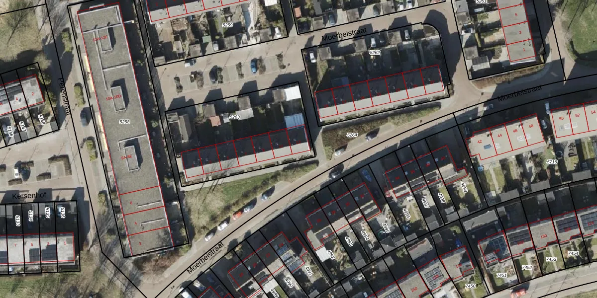 Het perceel waarop Moerbeistraat 13 staat heeft een oppervlakte van 1185 m². Dit is een zeer groot perceel. De perceeloppervlakte wordt geregistreerd door het Kadaster. Gedetailleerde informatie over de maten van dit perceel kunt u vinden in het rapport Kadastrale kaart met maatvoering van Moerbeistraat 13.