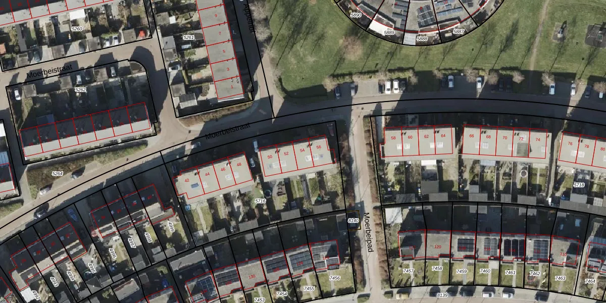 Het perceel waarop Moerbeistraat 54 staat heeft een oppervlakte van 1609 m². Dit is een zeer groot perceel. De perceeloppervlakte wordt geregistreerd door het Kadaster. Gedetailleerde informatie over de maten van dit perceel kunt u vinden in het rapport Kadastrale kaart met maatvoering van Moerbeistraat 54.