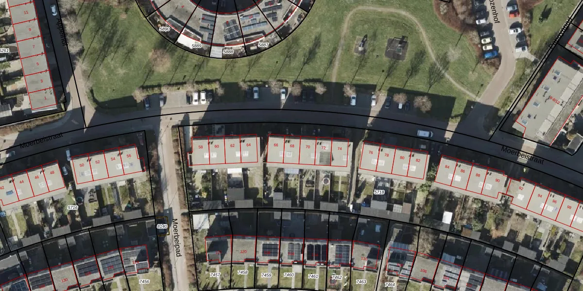 Het perceel waarop Moerbeistraat 68 staat heeft een oppervlakte van 4230 m². Dit is een zeer groot perceel. De perceeloppervlakte wordt geregistreerd door het Kadaster. Gedetailleerde informatie over de maten van dit perceel kunt u vinden in het rapport Kadastrale kaart met maatvoering van Moerbeistraat 68.