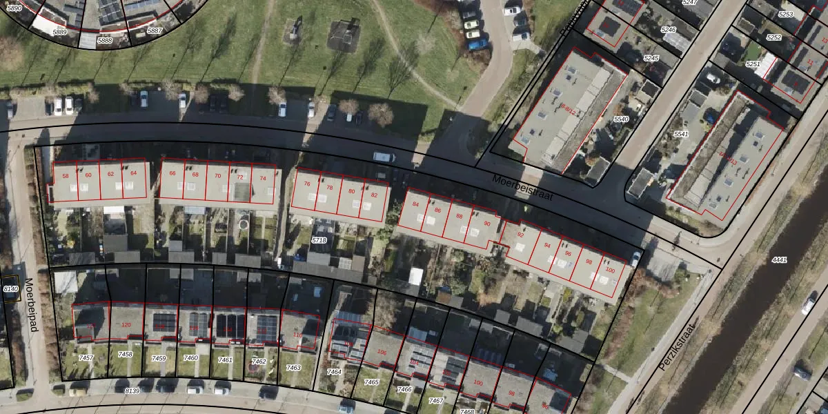 Het perceel waarop Moerbeistraat 84 staat heeft een oppervlakte van 4230 m². Dit is een zeer groot perceel. De perceeloppervlakte wordt geregistreerd door het Kadaster. Gedetailleerde informatie over de maten van dit perceel kunt u vinden in het rapport Kadastrale kaart met maatvoering van Moerbeistraat 84.