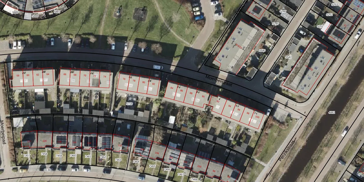 Het perceel waarop Moerbeistraat 86 staat heeft een oppervlakte van 4230 m². Dit is een zeer groot perceel. De perceeloppervlakte wordt geregistreerd door het Kadaster. Gedetailleerde informatie over de maten van dit perceel kunt u vinden in het rapport Kadastrale kaart met maatvoering van Moerbeistraat 86.