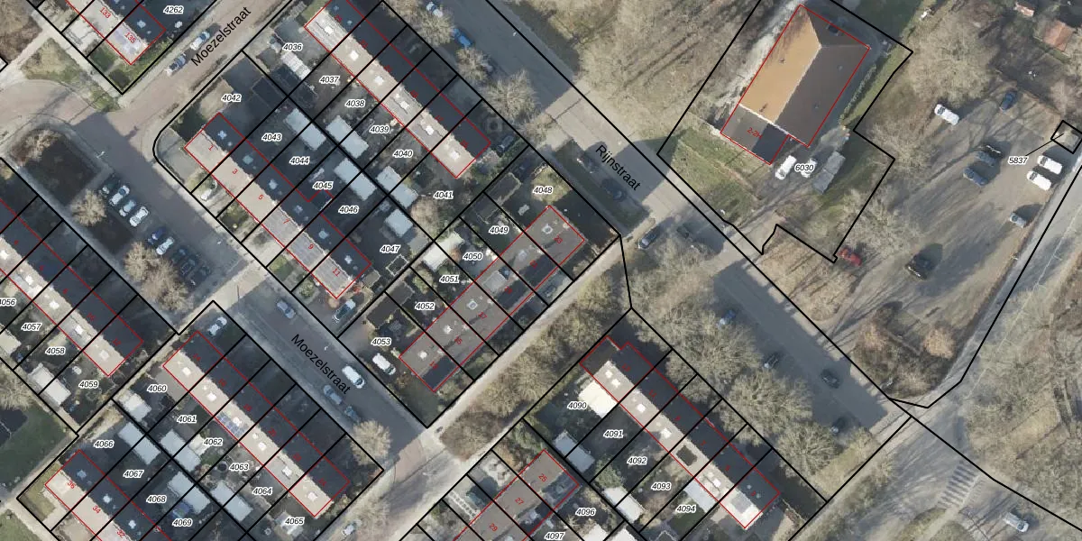 Gebruik de zoekbalk of klik op een perceel voor informatie over de adressen binnen dit perceel.