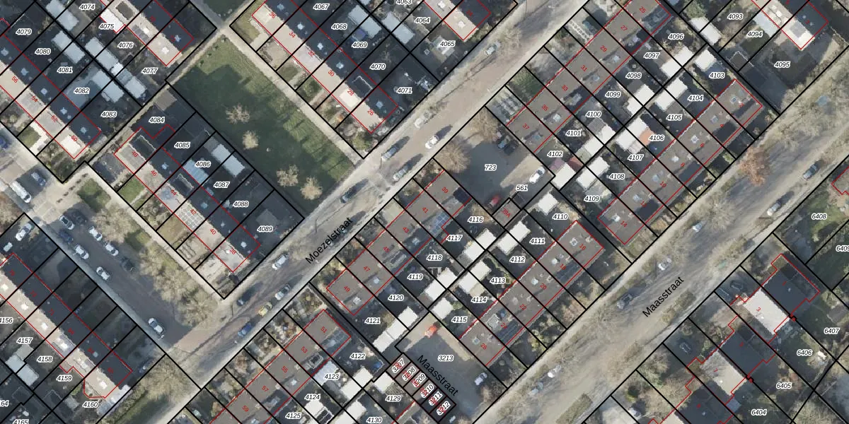 Gebruik de zoekbalk of klik op een perceel voor informatie over de adressen binnen dit perceel.