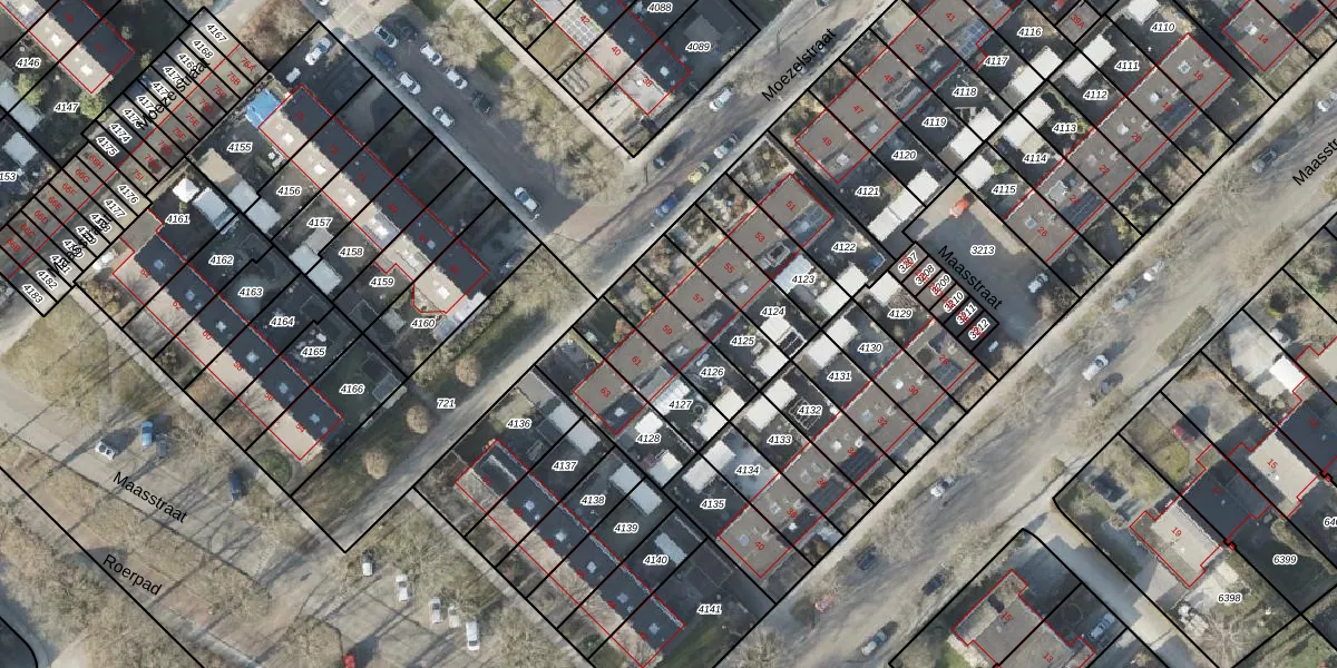 Gebruik de zoekbalk of klik op een perceel voor informatie over de adressen binnen dit perceel.
