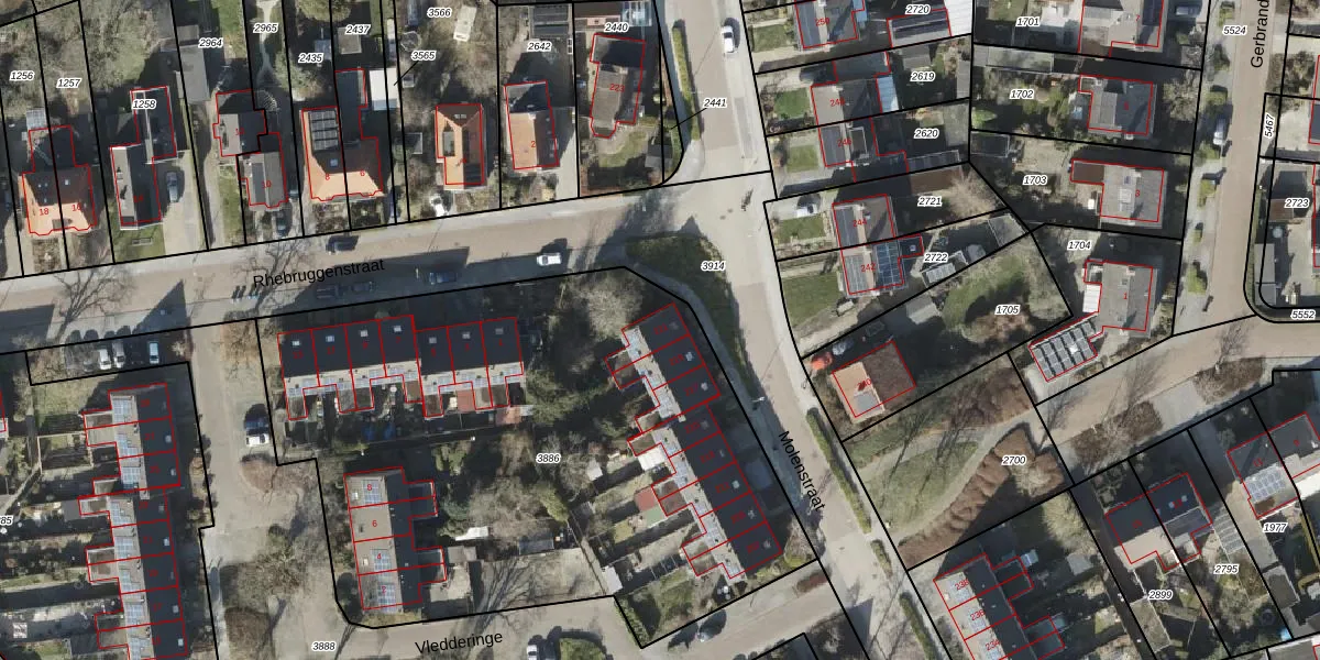 Het perceel waarop Molenstraat 221 staat heeft een oppervlakte van 3435 m². Dit is een zeer groot perceel. De perceeloppervlakte wordt geregistreerd door het Kadaster. Gedetailleerde informatie over de maten van dit perceel kunt u vinden in het rapport Kadastrale kaart met maatvoering van Molenstraat 221.