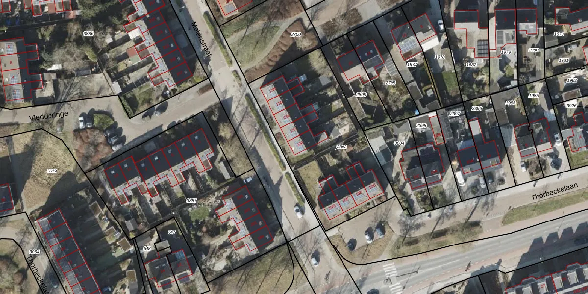 Het perceel waarop Molenstraat 230 staat heeft een oppervlakte van 1558 m². Dit is een zeer groot perceel. De perceeloppervlakte wordt geregistreerd door het Kadaster. Gedetailleerde informatie over de maten van dit perceel kunt u vinden in het rapport Kadastrale kaart met maatvoering van Molenstraat 230.