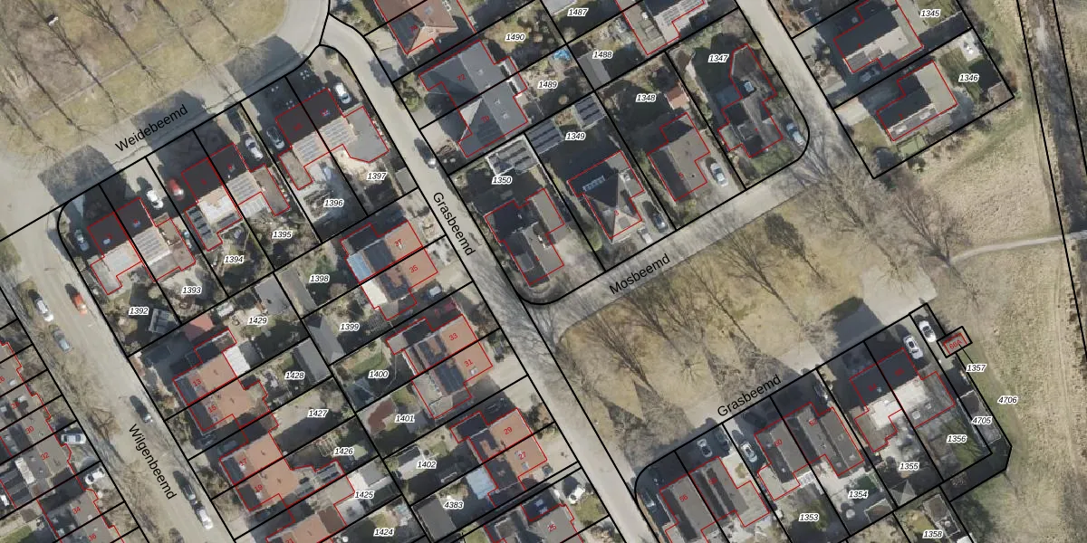 Gebruik de zoekbalk of klik op een perceel voor informatie over de adressen binnen dit perceel.