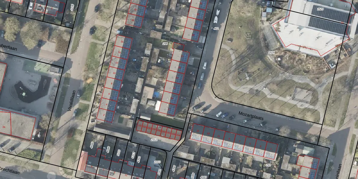 Het perceel waarop Mozartplaats 21 staat heeft een oppervlakte van 5624 m². Dit is een zeer groot perceel. De perceeloppervlakte wordt geregistreerd door het Kadaster. Gedetailleerde informatie over de maten van dit perceel kunt u vinden in het rapport Kadastrale kaart met maatvoering van Mozartplaats 21.