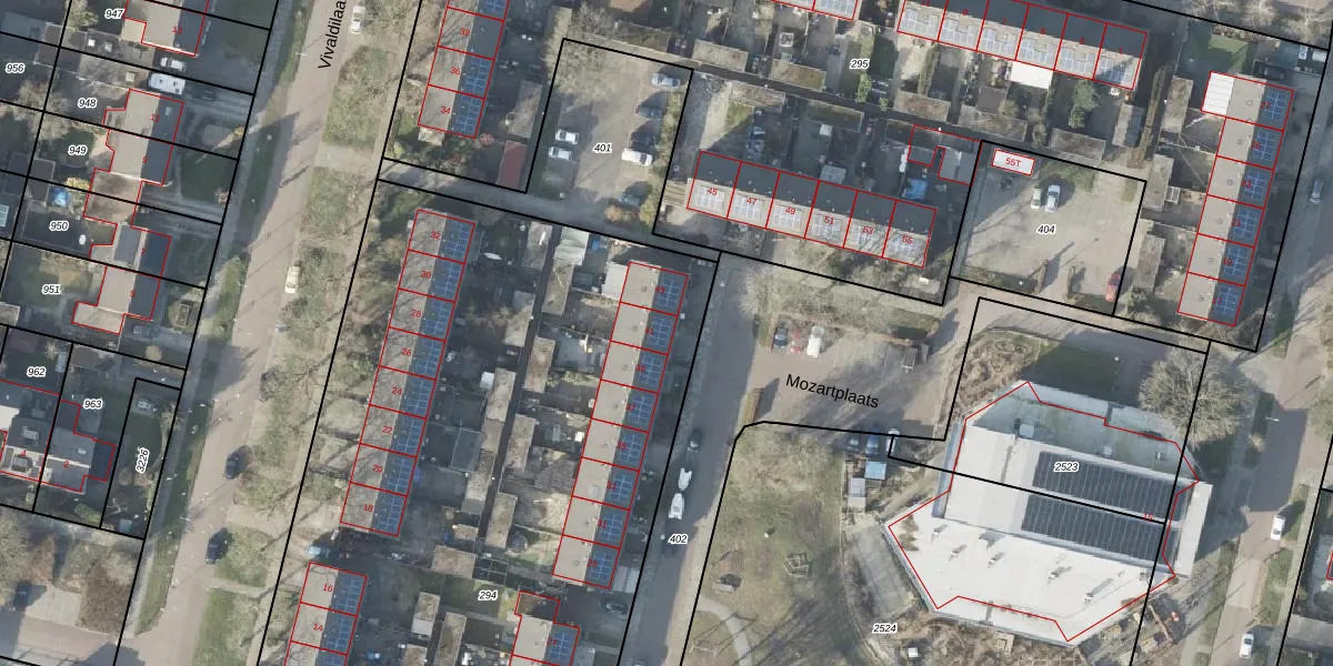 Het perceel waarop Mozartplaats 41 staat heeft een oppervlakte van 5624 m². Dit is een zeer groot perceel. De perceeloppervlakte wordt geregistreerd door het Kadaster. Gedetailleerde informatie over de maten van dit perceel kunt u vinden in het rapport Kadastrale kaart met maatvoering van Mozartplaats 41.