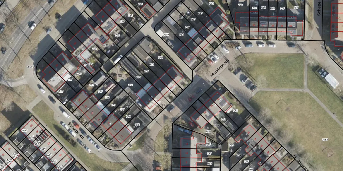 Het perceel waarop Muddegoorn 7 staat heeft een oppervlakte van 209 m². Dit is een middelgroot perceel. De perceeloppervlakte wordt geregistreerd door het Kadaster. Gedetailleerde informatie over de maten van dit perceel kunt u vinden in het rapport Kadastrale kaart met maatvoering van Muddegoorn 7.