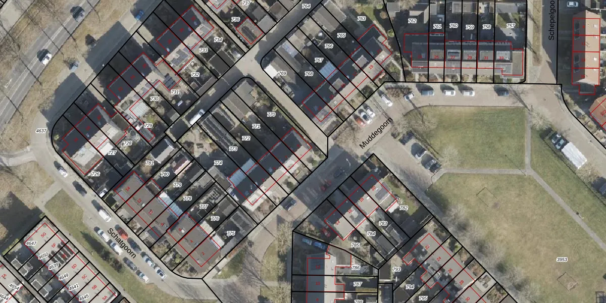 Het perceel waarop Muddegoorn 9 staat heeft een oppervlakte van 274 m². Dit is een middelgroot perceel. De perceeloppervlakte wordt geregistreerd door het Kadaster. Gedetailleerde informatie over de maten van dit perceel kunt u vinden in het rapport Kadastrale kaart met maatvoering van Muddegoorn 9.