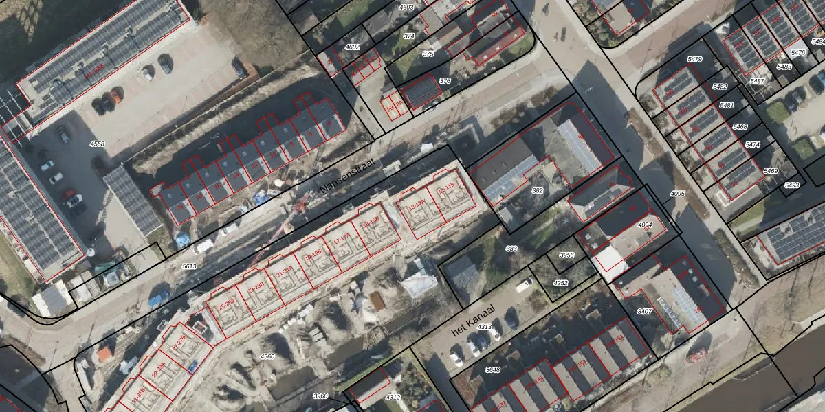 Het perceel waarop Nansenstraat 13-A staat heeft een oppervlakte van 4115 m². Dit is een zeer groot perceel. De perceeloppervlakte wordt geregistreerd door het Kadaster. Gedetailleerde informatie over de maten van dit perceel kunt u vinden in het rapport Kadastrale kaart met maatvoering van Nansenstraat 13-A.