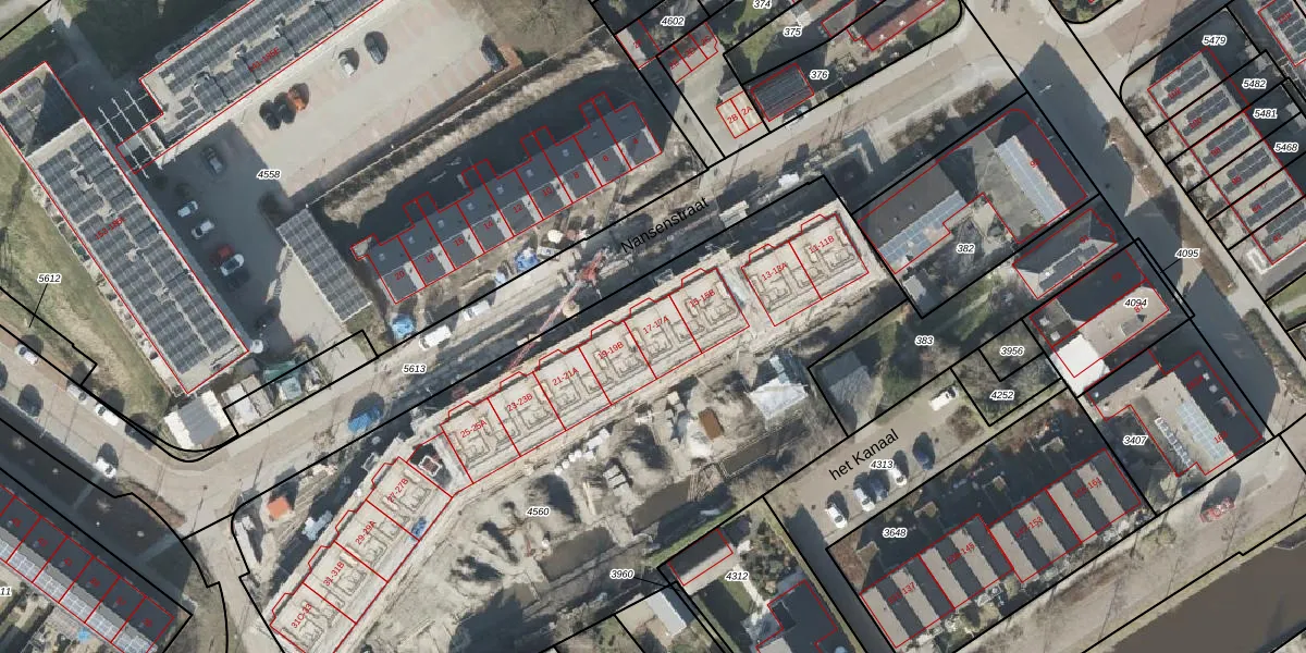 Het perceel waarop Nansenstraat 17-A staat heeft een oppervlakte van 4115 m². Dit is een zeer groot perceel. De perceeloppervlakte wordt geregistreerd door het Kadaster. Gedetailleerde informatie over de maten van dit perceel kunt u vinden in het rapport Kadastrale kaart met maatvoering van Nansenstraat 17-A.