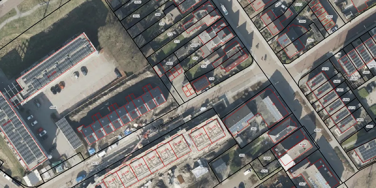 Het perceel waarop Nansenstraat 2-B staat heeft een oppervlakte van 380 m². Dit is een groot perceel. De perceeloppervlakte wordt geregistreerd door het Kadaster. Gedetailleerde informatie over de maten van dit perceel kunt u vinden in het rapport Kadastrale kaart met maatvoering van Nansenstraat 2-B.