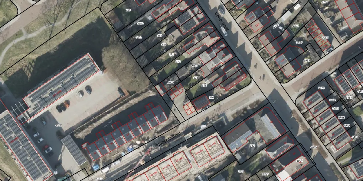 Het perceel waarop Nansenstraat 2-C staat heeft een oppervlakte van 380 m². Dit is een groot perceel. De perceeloppervlakte wordt geregistreerd door het Kadaster. Gedetailleerde informatie over de maten van dit perceel kunt u vinden in het rapport Kadastrale kaart met maatvoering van Nansenstraat 2-C.