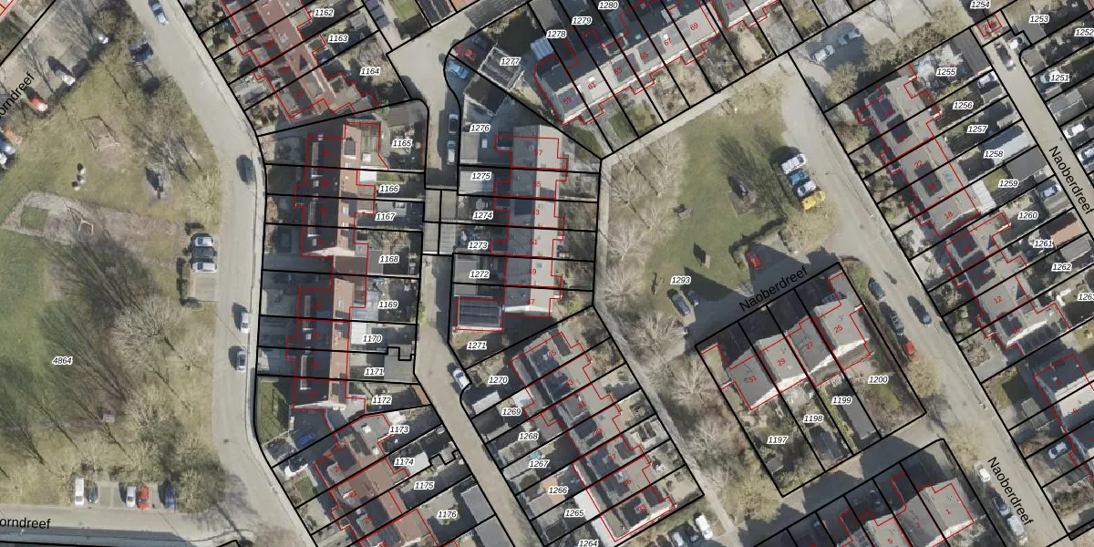 Het perceel waarop Naoberdreef 49 staat heeft een oppervlakte van 141 m². Dit is een middelgroot perceel. De perceeloppervlakte wordt geregistreerd door het Kadaster. Gedetailleerde informatie over de maten van dit perceel kunt u vinden in het rapport Kadastrale kaart met maatvoering van Naoberdreef 49.