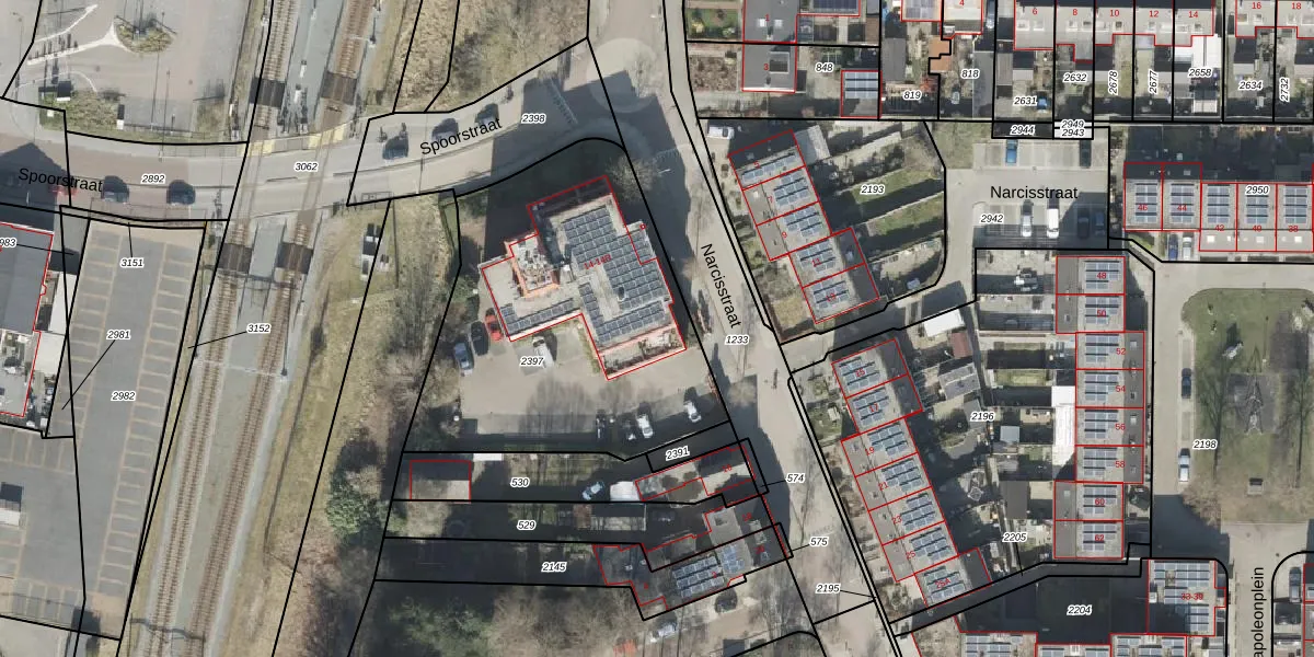 Het perceel waarop Narcisstraat 14-I staat heeft een oppervlakte van 1634 m². Dit is een zeer groot perceel. De perceeloppervlakte wordt geregistreerd door het Kadaster. Gedetailleerde informatie over de maten van dit perceel kunt u vinden in het rapport Kadastrale kaart met maatvoering van Narcisstraat 14-I.