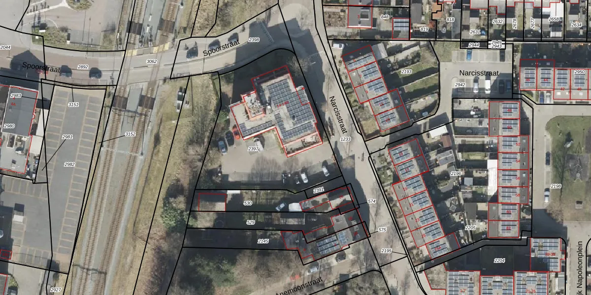 Narcisstraat 14-O is gelegen op kadastraal perceel ASN00V2397. Deze kadastrale aanduiding is uniek en wordt gebruikt door het Kadaster om eigendomsrechten en andere zakelijke rechten vast te leggen. Het perceel maakt onderdeel uit van de kadastrale gemeente Assen.