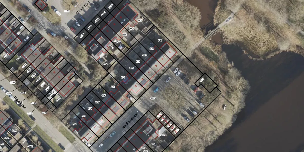 Gebruik de zoekbalk of klik op een perceel voor informatie over de adressen binnen dit perceel.