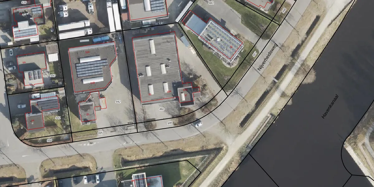 Het perceel waarop Nijverheidsweg 37-A staat heeft een oppervlakte van 1959 m². Dit is een zeer groot perceel. De perceeloppervlakte wordt geregistreerd door het Kadaster. Gedetailleerde informatie over de maten van dit perceel kunt u vinden in het rapport Kadastrale kaart met maatvoering van Nijverheidsweg 37-A.