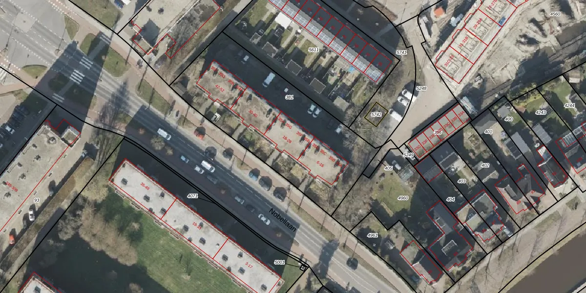 Nobellaan 20 is gelegen op kadastraal perceel ASN00T381. Deze kadastrale aanduiding is uniek en wordt gebruikt door het Kadaster om eigendomsrechten en andere zakelijke rechten vast te leggen. Het perceel maakt onderdeel uit van de kadastrale gemeente Assen.