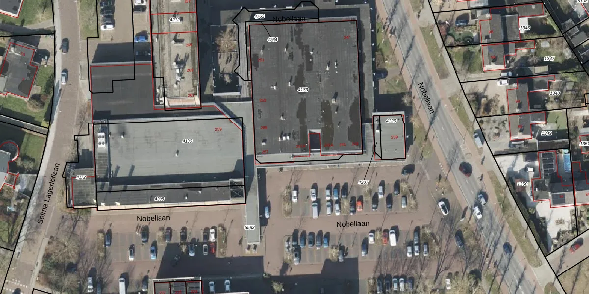 Het perceel waarop Nobellaan 257-A staat heeft een oppervlakte van 1679 m². Dit is een zeer groot perceel. De perceeloppervlakte wordt geregistreerd door het Kadaster. Gedetailleerde informatie over de maten van dit perceel kunt u vinden in het rapport Kadastrale kaart met maatvoering van Nobellaan 257-A.