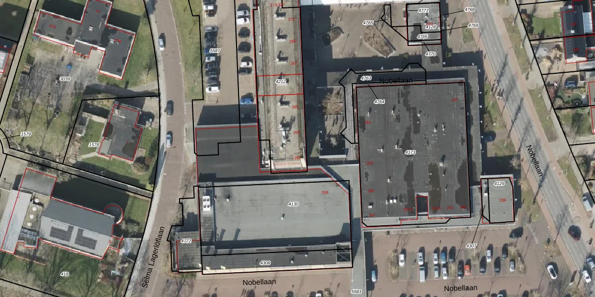 Het perceel waarop Nobellaan 261 staat heeft een oppervlakte van 886 m². Dit is een groot perceel. De perceeloppervlakte wordt geregistreerd door het Kadaster. Gedetailleerde informatie over de maten van dit perceel kunt u vinden in het rapport Kadastrale kaart met maatvoering van Nobellaan 261.