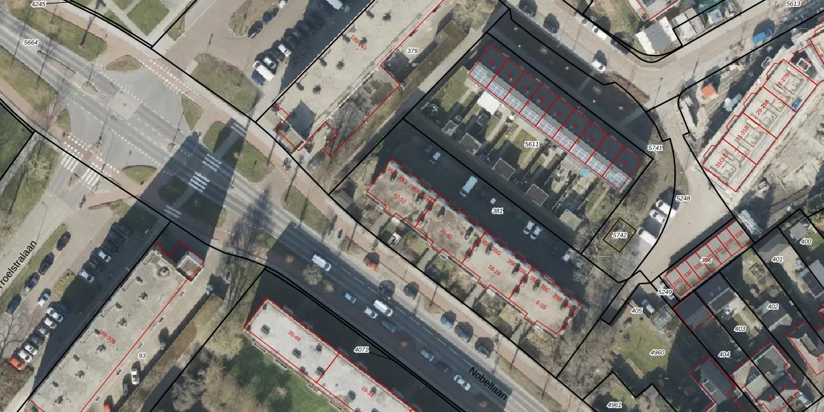 Nobellaan 44 is gelegen op kadastraal perceel ASN00T381. Deze kadastrale aanduiding is uniek en wordt gebruikt door het Kadaster om eigendomsrechten en andere zakelijke rechten vast te leggen. Het perceel maakt onderdeel uit van de kadastrale gemeente Assen.