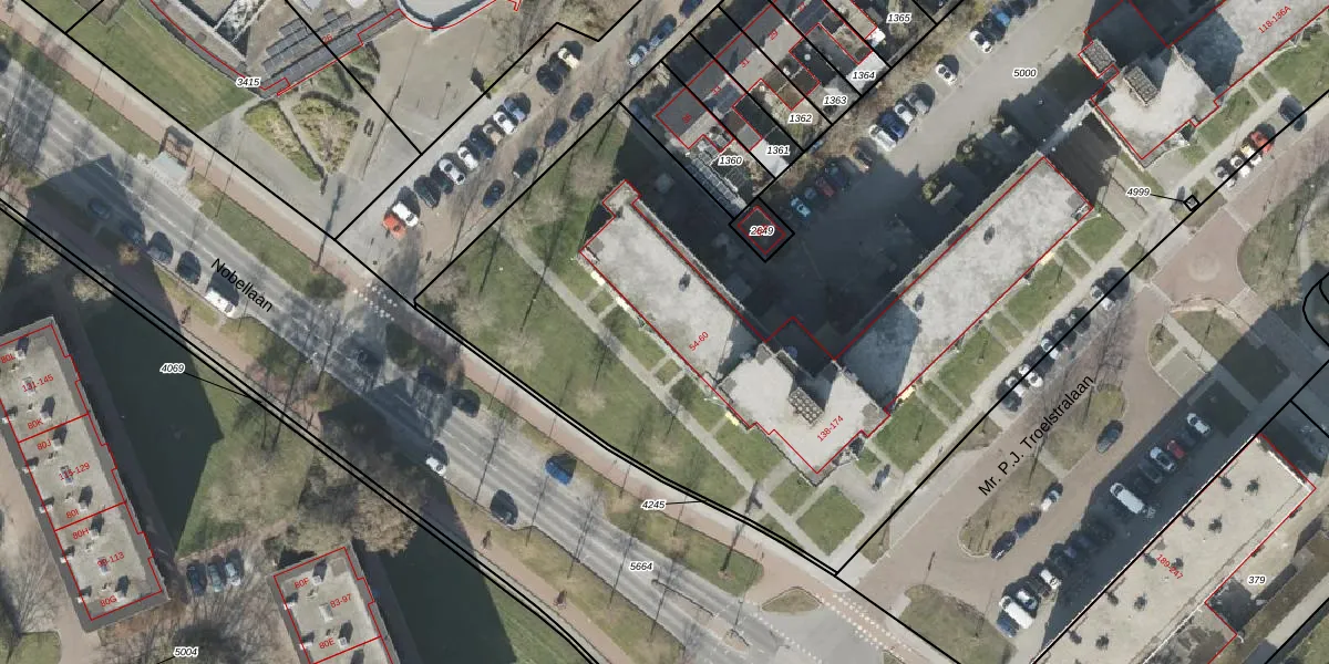Het perceel waarop Nobellaan 56 staat heeft een oppervlakte van 8149 m². Dit is een zeer groot perceel. De perceeloppervlakte wordt geregistreerd door het Kadaster. Gedetailleerde informatie over de maten van dit perceel kunt u vinden in het rapport Kadastrale kaart met maatvoering van Nobellaan 56.