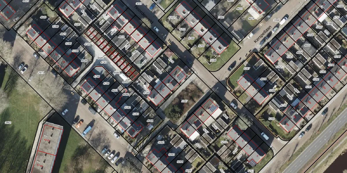 Gebruik de zoekbalk of klik op een perceel voor informatie over de adressen binnen dit perceel.