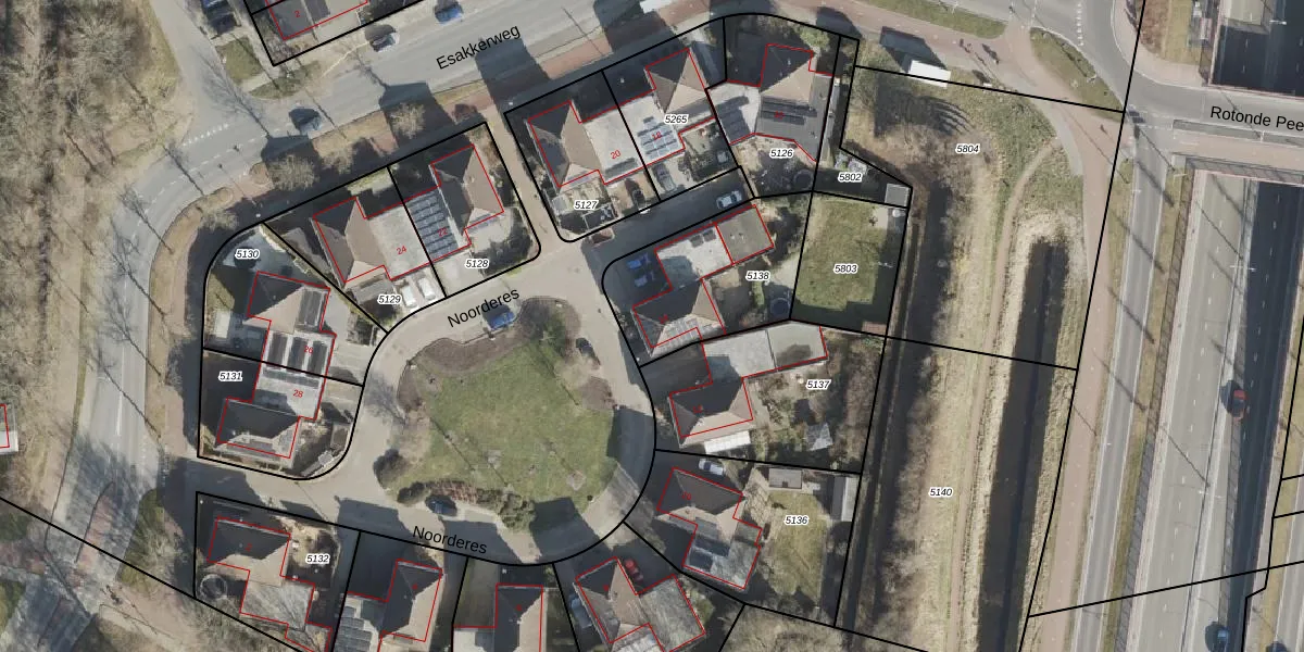 Het perceel waarop Noorderes 14 staat heeft een oppervlakte van 528 m². Dit is een groot perceel. De perceeloppervlakte wordt geregistreerd door het Kadaster. Gedetailleerde informatie over de maten van dit perceel kunt u vinden in het rapport Kadastrale kaart met maatvoering van Noorderes 14.
