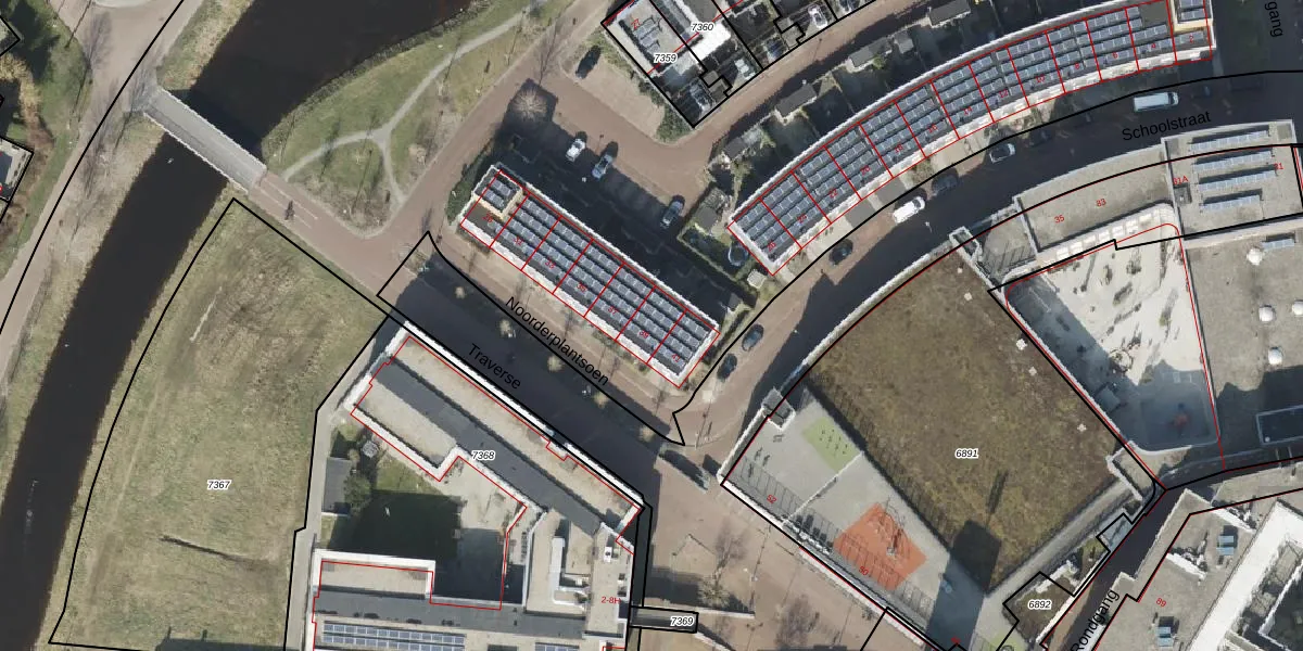 Het perceel waarop Noorderplantsoen 39 staat heeft een oppervlakte van 6,1 ha. Dit is een zeer groot perceel. De perceeloppervlakte wordt geregistreerd door het Kadaster. Gedetailleerde informatie over de maten van dit perceel kunt u vinden in het rapport Kadastrale kaart met maatvoering van Noorderplantsoen 39.