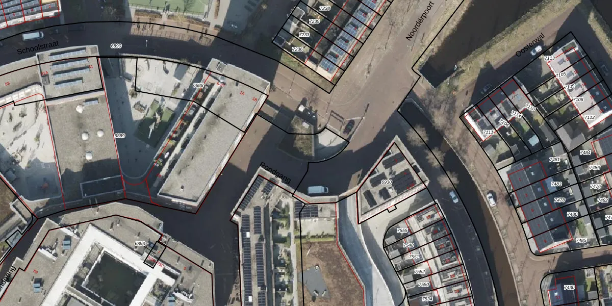 Het perceel waarop Noorderpoort 1 staat heeft een oppervlakte van 6162 m². Dit is een zeer groot perceel. De perceeloppervlakte wordt geregistreerd door het Kadaster. Gedetailleerde informatie over de maten van dit perceel kunt u vinden in het rapport Kadastrale kaart met maatvoering van Noorderpoort 1.