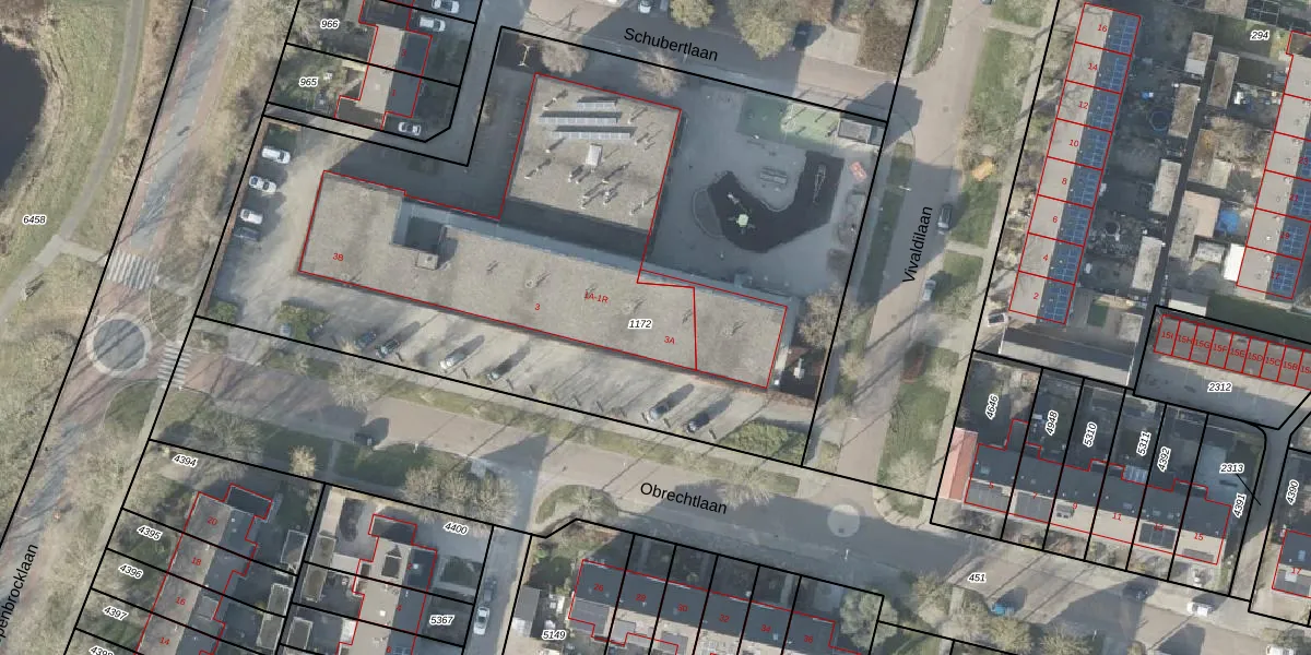 Het perceel waarop Obrechtlaan 1-G staat heeft een oppervlakte van 4351 m². Dit is een zeer groot perceel. De perceeloppervlakte wordt geregistreerd door het Kadaster. Gedetailleerde informatie over de maten van dit perceel kunt u vinden in het rapport Kadastrale kaart met maatvoering van Obrechtlaan 1-G.