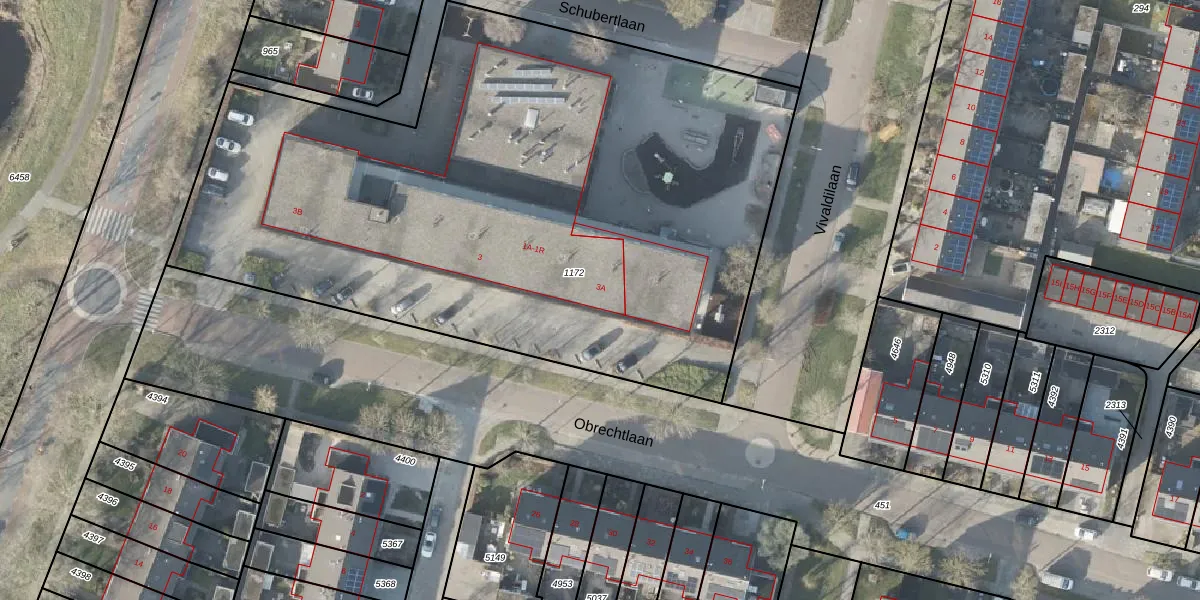 Het perceel waarop Obrechtlaan 3-A staat heeft een oppervlakte van 4351 m². Dit is een zeer groot perceel. De perceeloppervlakte wordt geregistreerd door het Kadaster. Gedetailleerde informatie over de maten van dit perceel kunt u vinden in het rapport Kadastrale kaart met maatvoering van Obrechtlaan 3-A.