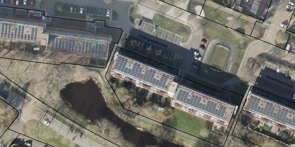 Het perceel waarop Oldengaardestraat 124 staat heeft een oppervlakte van 3206 m². Dit is een zeer groot perceel. De perceeloppervlakte wordt geregistreerd door het Kadaster. Gedetailleerde informatie over de maten van dit perceel kunt u vinden in het rapport Kadastrale kaart met maatvoering van Oldengaardestraat 124.