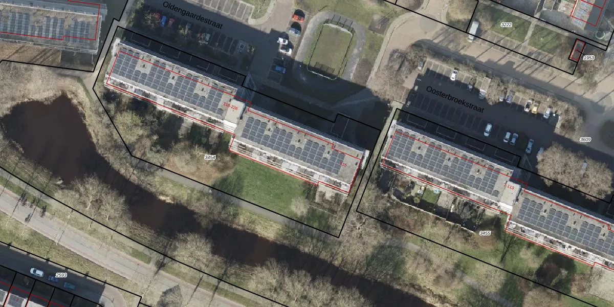 Het perceel waarop Oldengaardestraat 156 staat heeft een oppervlakte van 3206 m². Dit is een zeer groot perceel. De perceeloppervlakte wordt geregistreerd door het Kadaster. Gedetailleerde informatie over de maten van dit perceel kunt u vinden in het rapport Kadastrale kaart met maatvoering van Oldengaardestraat 156.