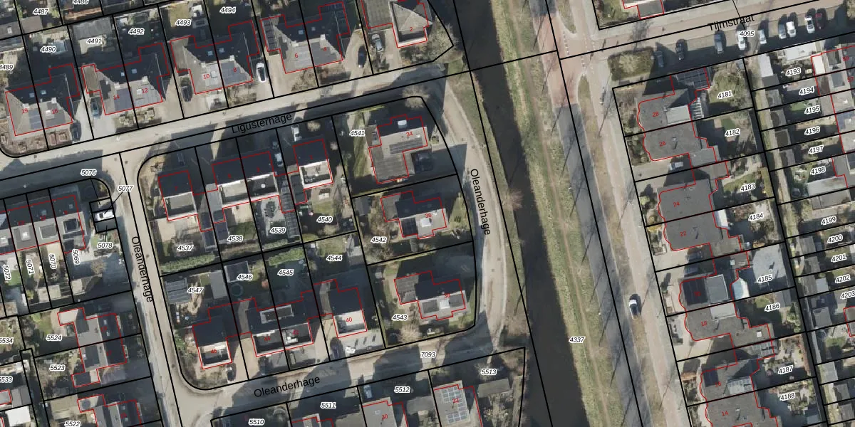 Gebruik de zoekbalk of klik op een perceel voor informatie over de adressen binnen dit perceel.