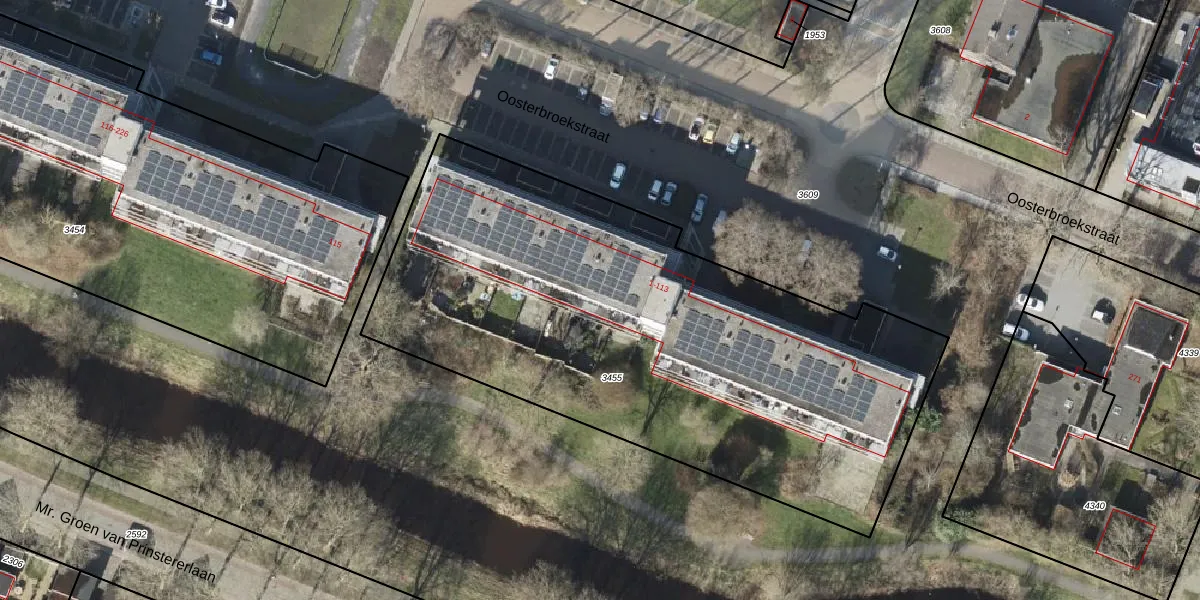 Het perceel waarop Oosterbroekstraat 101 staat heeft een oppervlakte van 3197 m². Dit is een zeer groot perceel. De perceeloppervlakte wordt geregistreerd door het Kadaster. Gedetailleerde informatie over de maten van dit perceel kunt u vinden in het rapport Kadastrale kaart met maatvoering van Oosterbroekstraat 101.