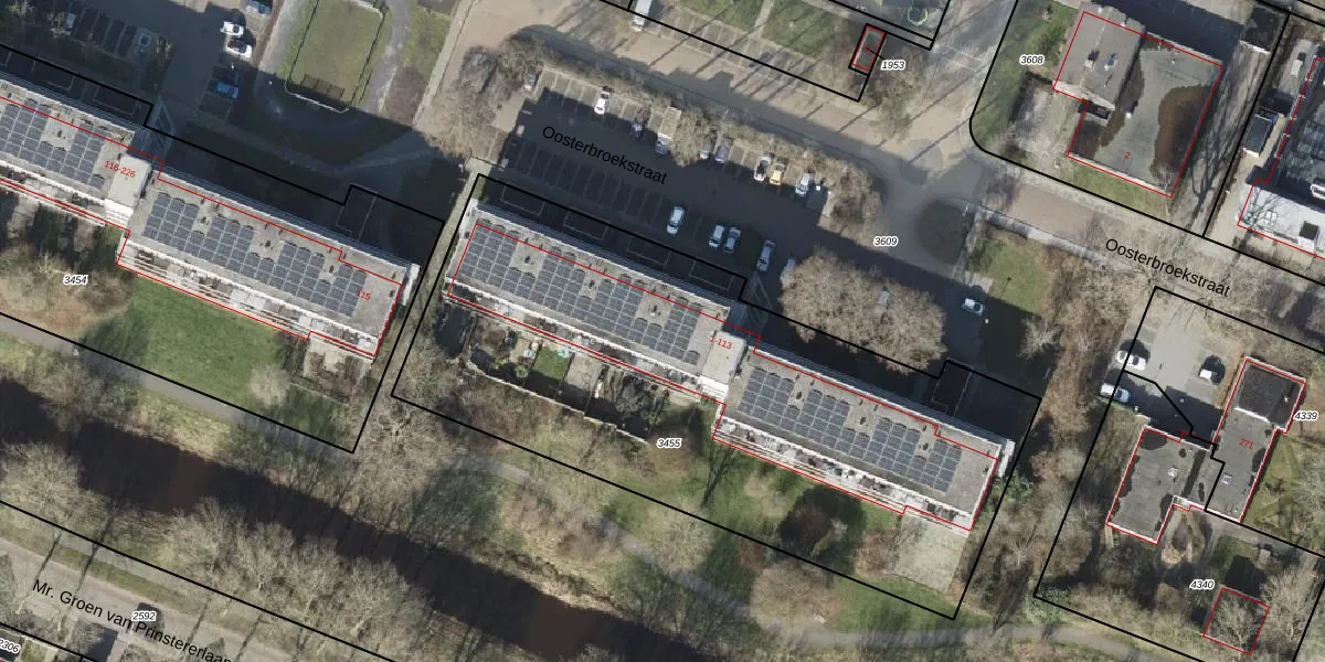 Het perceel waarop Oosterbroekstraat 37 staat heeft een oppervlakte van 3197 m². Dit is een zeer groot perceel. De perceeloppervlakte wordt geregistreerd door het Kadaster. Gedetailleerde informatie over de maten van dit perceel kunt u vinden in het rapport Kadastrale kaart met maatvoering van Oosterbroekstraat 37.