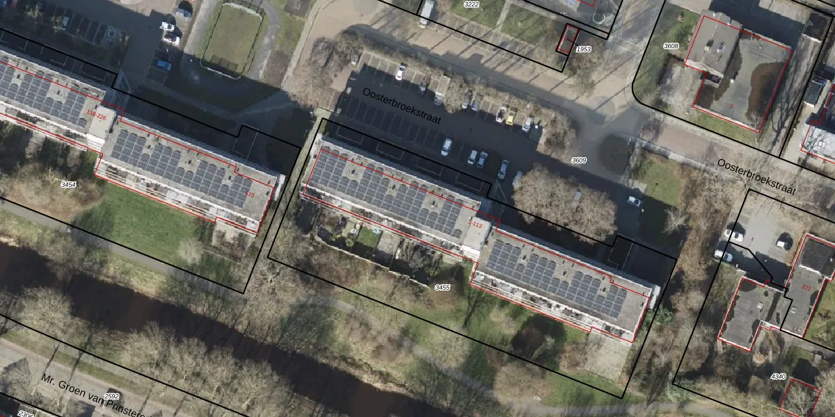 Het perceel waarop Oosterbroekstraat 39 staat heeft een oppervlakte van 3197 m². Dit is een zeer groot perceel. De perceeloppervlakte wordt geregistreerd door het Kadaster. Gedetailleerde informatie over de maten van dit perceel kunt u vinden in het rapport Kadastrale kaart met maatvoering van Oosterbroekstraat 39.