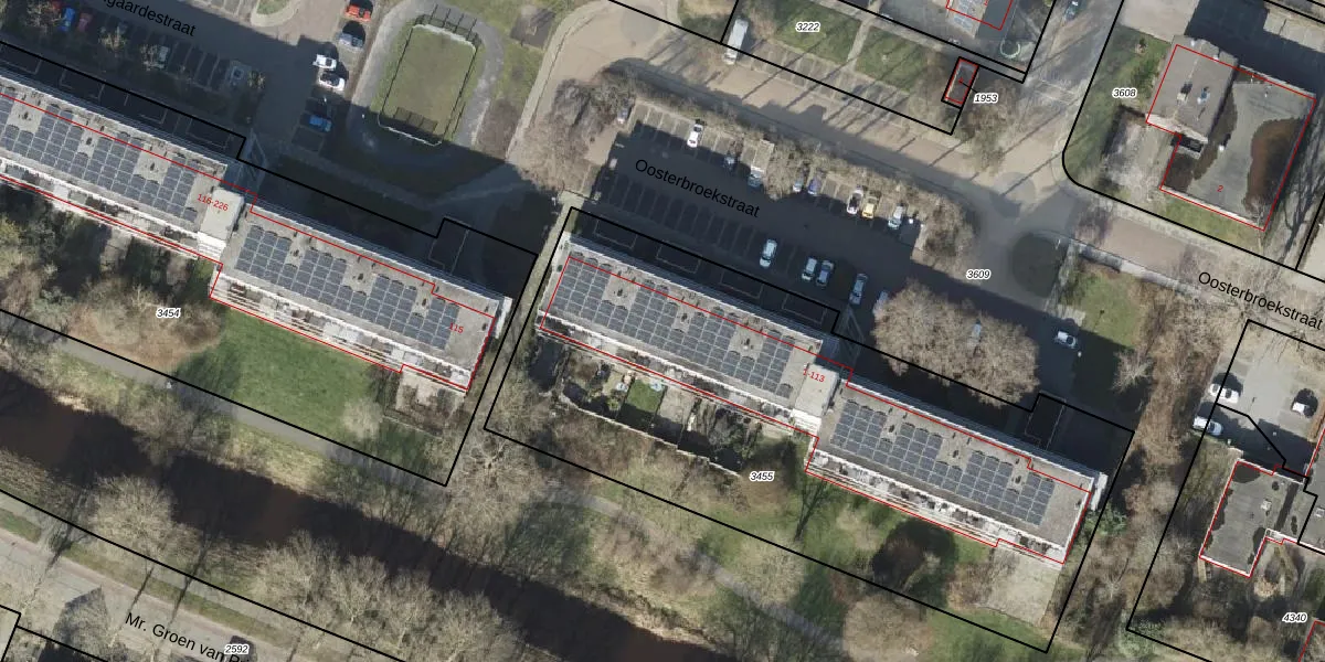 Het perceel waarop Oosterbroekstraat 43 staat heeft een oppervlakte van 3197 m². Dit is een zeer groot perceel. De perceeloppervlakte wordt geregistreerd door het Kadaster. Gedetailleerde informatie over de maten van dit perceel kunt u vinden in het rapport Kadastrale kaart met maatvoering van Oosterbroekstraat 43.