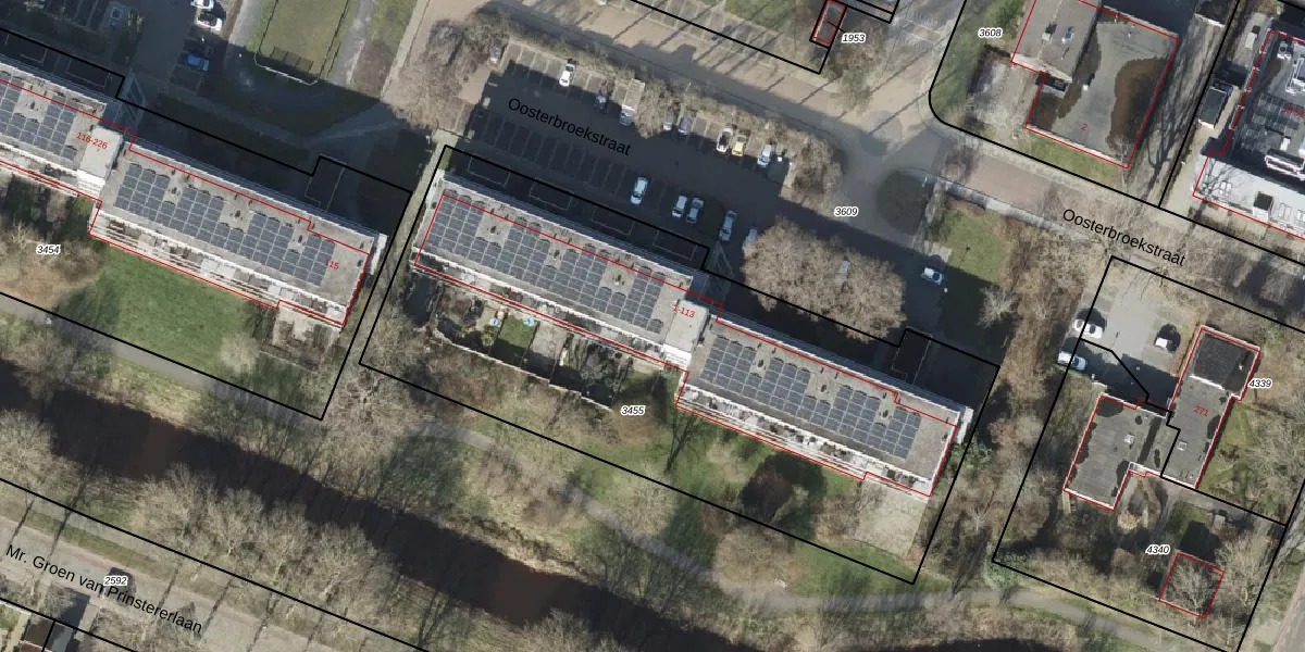 Het perceel waarop Oosterbroekstraat 67 staat heeft een oppervlakte van 3197 m². Dit is een zeer groot perceel. De perceeloppervlakte wordt geregistreerd door het Kadaster. Gedetailleerde informatie over de maten van dit perceel kunt u vinden in het rapport Kadastrale kaart met maatvoering van Oosterbroekstraat 67.