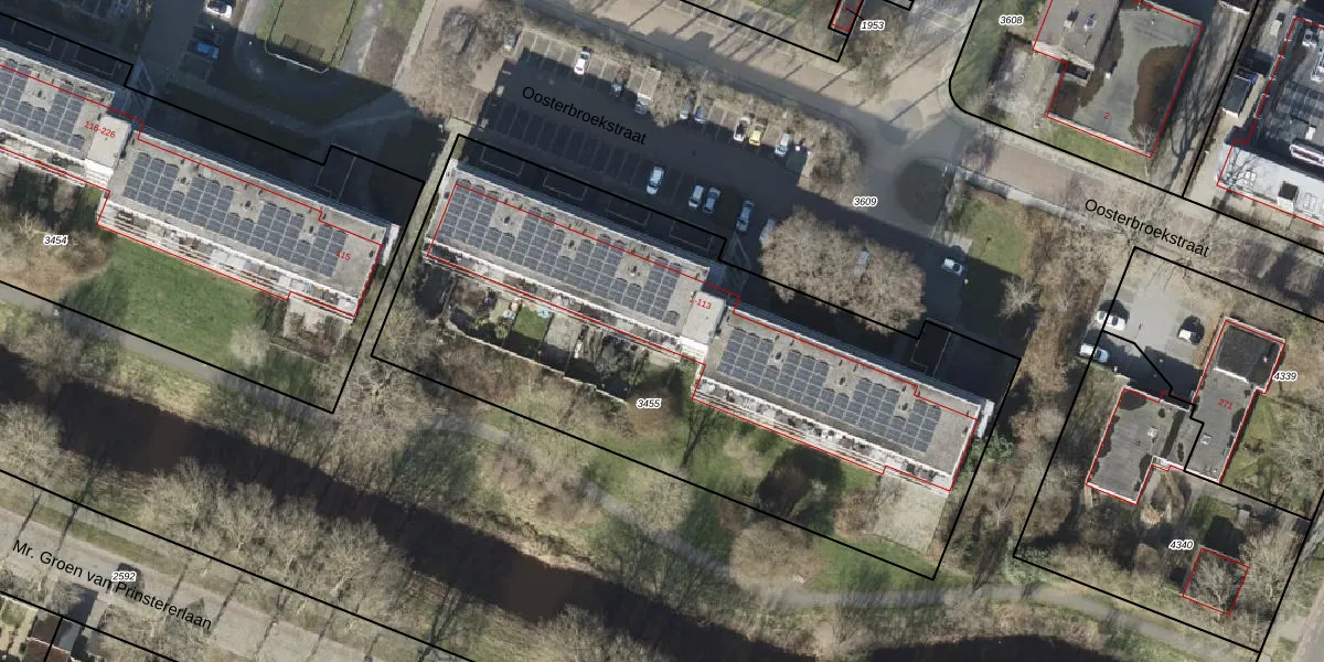 Het perceel waarop Oosterbroekstraat 99 staat heeft een oppervlakte van 3197 m². Dit is een zeer groot perceel. De perceeloppervlakte wordt geregistreerd door het Kadaster. Gedetailleerde informatie over de maten van dit perceel kunt u vinden in het rapport Kadastrale kaart met maatvoering van Oosterbroekstraat 99.